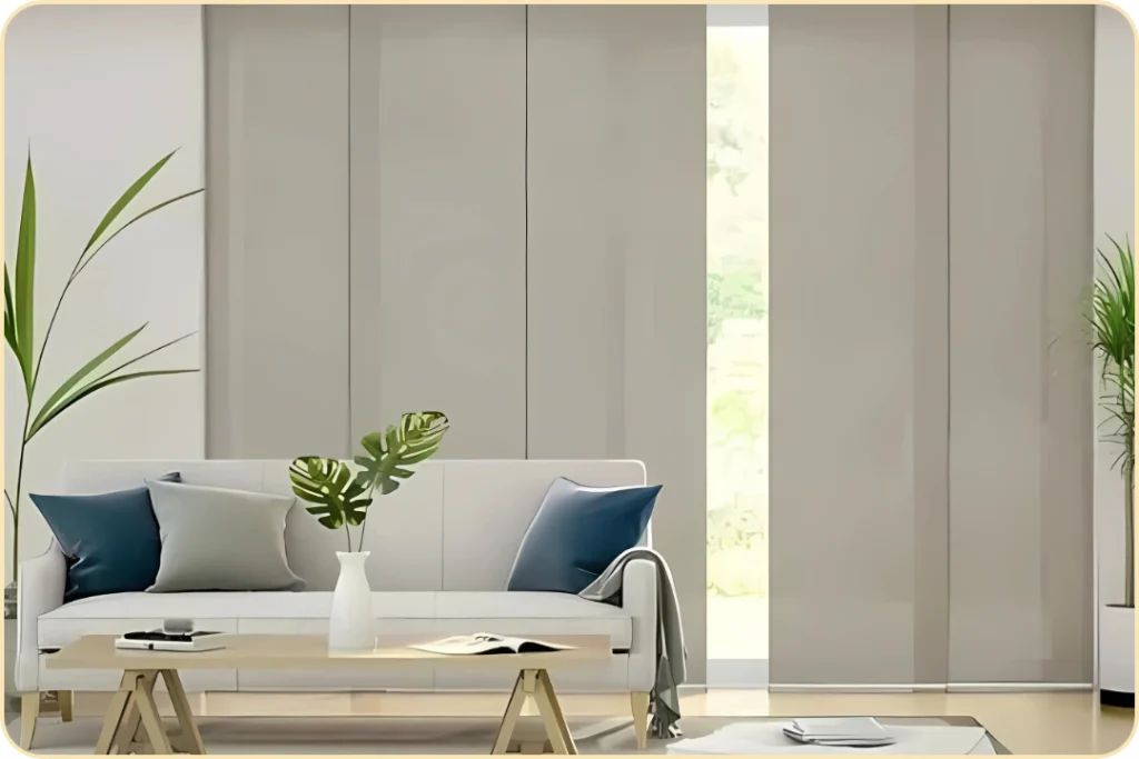 Panel blinds suit all kinds of interiors, from modern apartments with sliding doors to offices that need light control blinds for meeting rooms. Their flexible design makes them great for dividing spaces, too, acting as room dividers when needed.