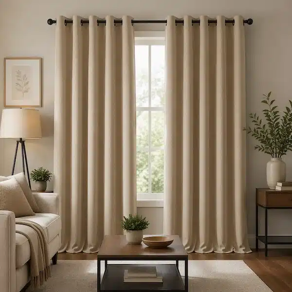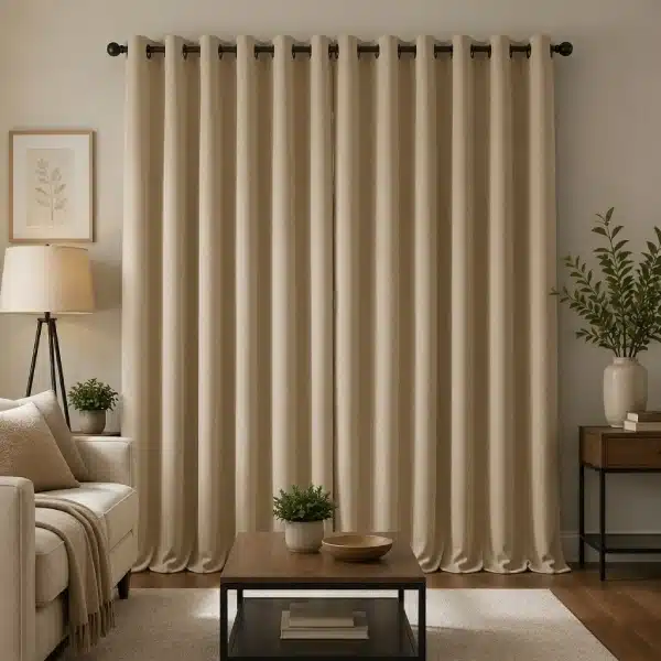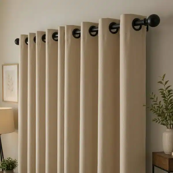 Upgrade your space with Beige Eyelet Blackout Living Room Curtains that offer a perfect balance of style and functionality. The premium blackout fabric blocks unwanted light while maintaining privacy, making them ideal for UAE living rooms. Designed with smooth eyelets, these curtains ensure effortless movement and a clean modern finish.