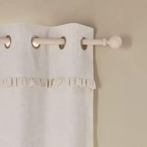 Beige frill eyelet linen curtains designed with delicate ruffled detailing for a soft, decorative finish. The airy linen fabric allows natural light to pass through while creating graceful folds that add warmth and charm to your space.