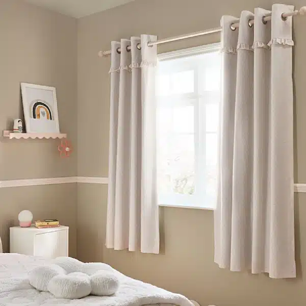 The Beige Frill Eyelet Linen Curtains offer a beautiful blend of elegance and subtle detailing, perfect for enhancing any interior with a touch of softness. Made from premium-quality linen, these curtains feature a stylish eyelet header for smooth hanging and evenly spaced waves, complemented by delicate frill accents that add a decorative, feminine touch. The warm beige tone works effortlessly with a variety of dรฉcor styles, bringing a cozy and inviting feel to your room.