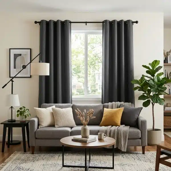 Enhance your space with the Charcoal Grey Eyelet Blackout Curtain. The rich charcoal tone creates a refined and calming atmosphere while efficiently blocking light and improving privacy. Designed with durable grommets, it allows smooth installation and a clean, modern look, making it an ideal choice for bedrooms, living areas, or offices that require comfort and style.