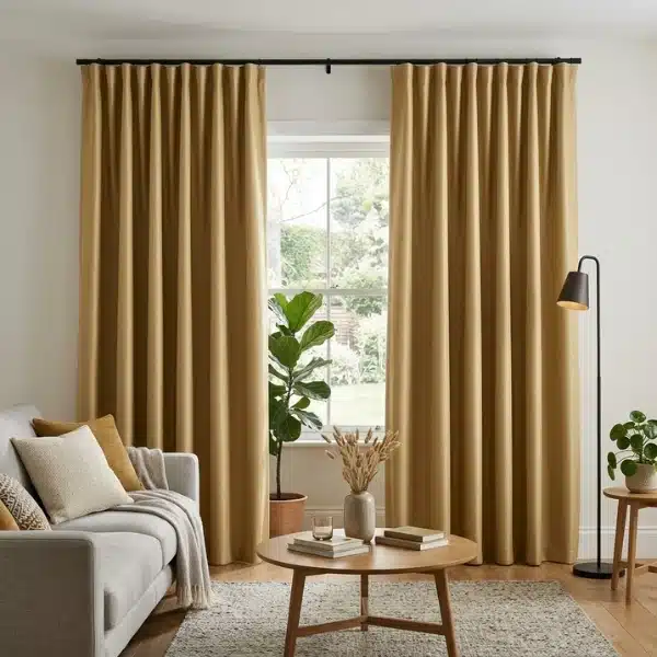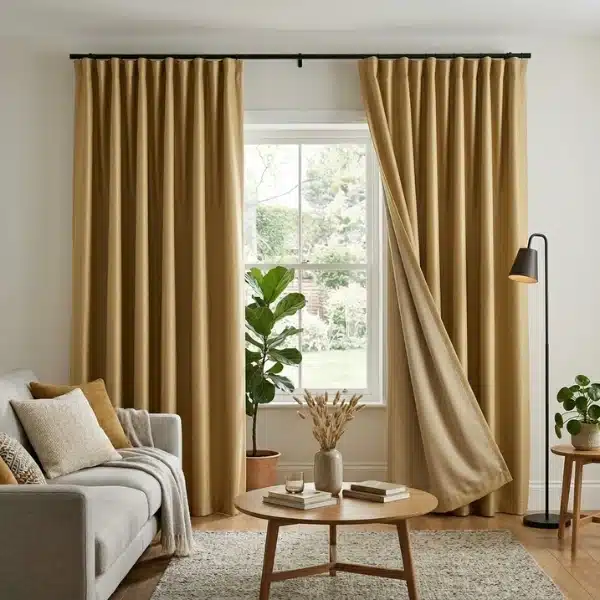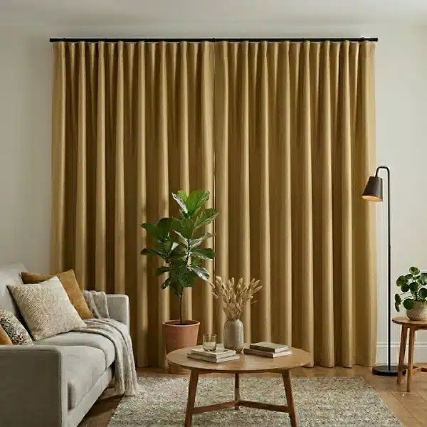 Transform your interiors with the Golden Sand Luxe Blackout Curtain. Its warm golden tone with a soft sheen brings a luxurious and modern feel, while the premium blackout fabric blocks sunlight and minimizes heat. Designed with rich folds and smooth texture, it adds both elegance and comfort to bedrooms and living spaces.