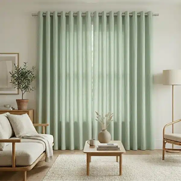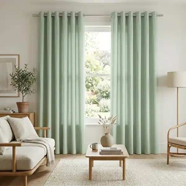 Pastel green cotton window curtain designed to gently filter sunlight and enhance privacy while giving your space a fresh and calming look. Made from soft premium cotton fabric, it offers durability, smooth texture, and an elegant drape. Ideal for bedrooms, living rooms, and modern home interiors.