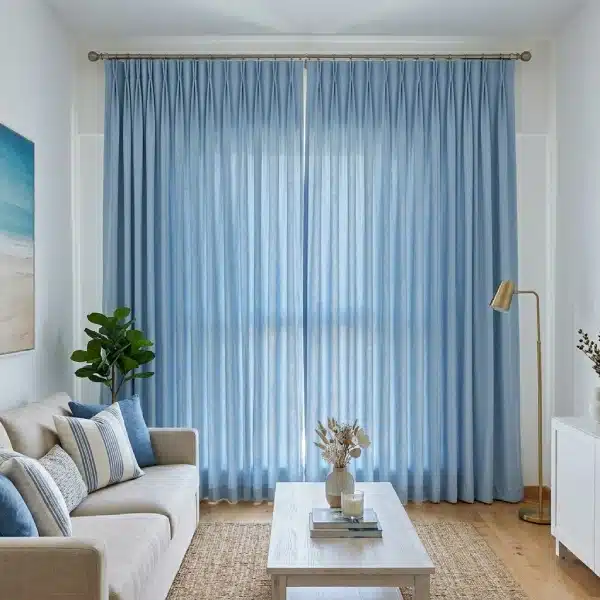 Create a peaceful and stylish atmosphere in your home with our Soft Blue Cotton Pleated Window Curtain. Crafted from high-quality cotton fabric, this curtain provides a soft, natural texture that enhances comfort while ensuring durability for everyday use. The gentle blue tone introduces a relaxing and refreshing feel, making it an excellent choice for bedrooms, living rooms, or any space where you want a calm environment.