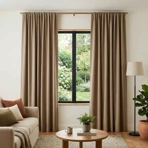 Warm Taupe Cotton Window Curtain brings a soft and elegant touch to your space with its natural warm tone and smooth cotton texture. It offers a graceful drape that enhances modern interiors while creating a cozy and welcoming atmosphere. The gentle light filtering effect allows natural daylight in while maintaining your privacy throughout the day. Perfect for UAE homes, it adds both comfort and timeless style to any room.
